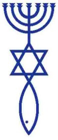 Das Zeichen rechts wurde bei Qumran in der Nähe des Toten Meeres in Israel gefunden und von Archäologen auf das erste Jahrhundert nach Christus datiert. Der Fisch (Ichthys) ist ein Symbol der frühchristlichen Gläubigen aus den Nationen. Heute noch kleben sich einige Christen das Ichthys-Zeichen an ihr Auto. Die Menora ist ein Symbol des jüdischen Volkes und seit 1948 das Emblem des Staates Israel. Zusammen treffen sich die beiden in der Mitte als Davidstern.