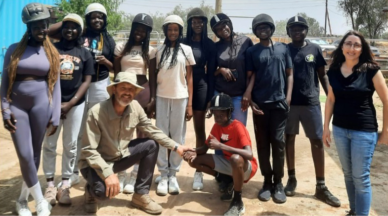 Yoyakim & Debbie Figueras mit den sudanesischen Jugendlichen auf der Pferdefarm.