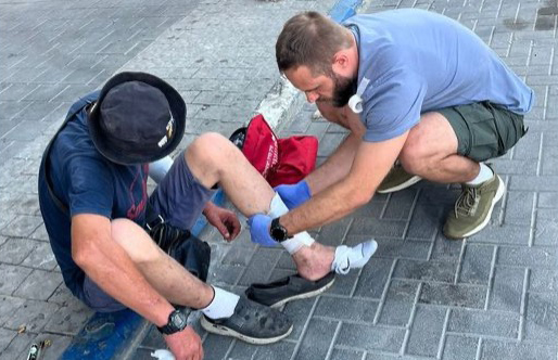 Gestern, während das Hauptteam im Aviv Center beschäftigt war, beschloss ich, durch die nahegelegenen Strassen zu laufen, Leute in unsere Suppenküche einzuladen und unterwegs Erste Hilfe anzubieten. Begleitet wurde ich von Eddie, einem Bruder in Christus aus Holland, der sich an diesem Tag unserer Outreach angeschlossen hatte.